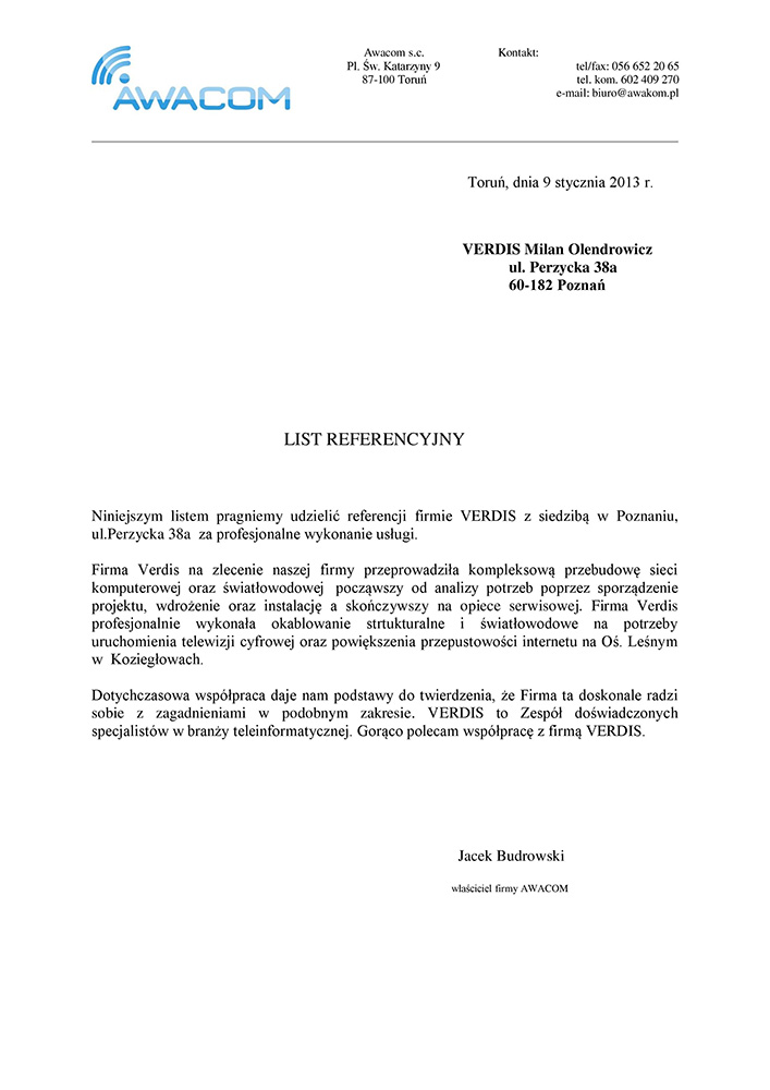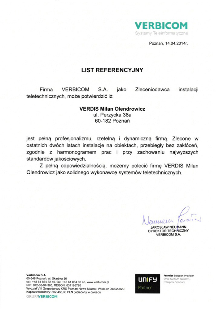 Firma Verdis zajmuje sie budową i rozbudowa systemów teleinformatycznych oraz zintegrowanych sieci komputerowych.